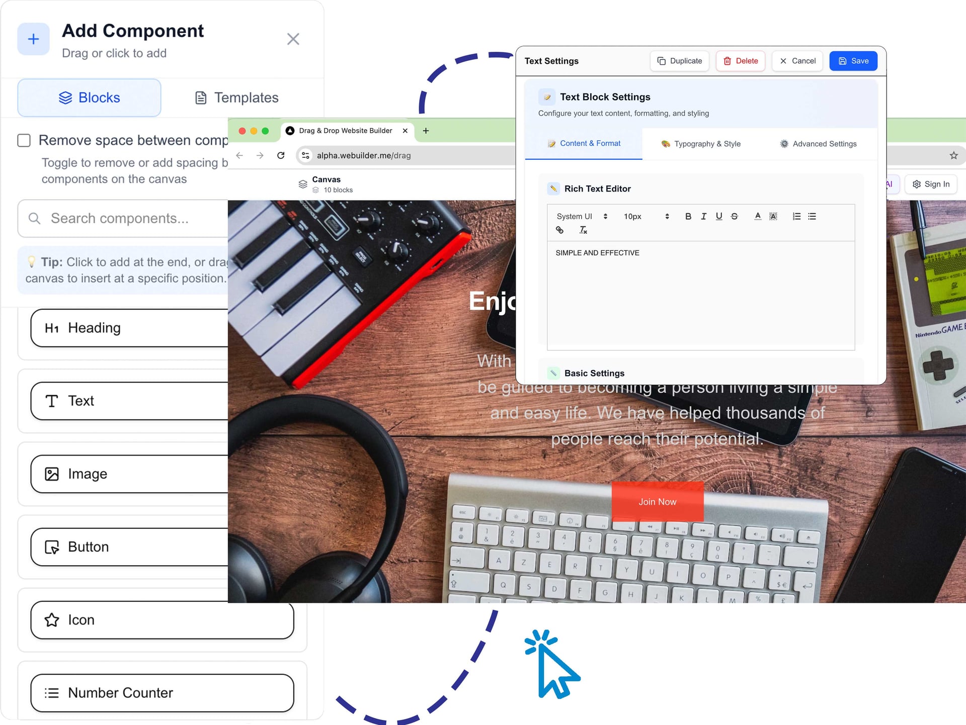 Build your dream website effortlessly with the free page builder templates at Webuilder.